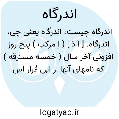 اندرگاه. [ اَ دَ ] ( اِ مرکب ) پنج روز افزونی آخر سال ( خمسه مسترقه ) که نامهای آنها از این قرار است: اهنود ( =اهنوذ ) اشتوذ، اسپنمد( =اسپنتمذ )، و هوخشتر، و هشتوایشت. ( از فرهنگ فارسی معین ) ( از مقدمه التفهیم ص قلج ). پنج روزی که در آخر اسفندارمذ ماه یا آبان ماه برسی روز می افزوده اند. پنجه دزدیده. بهیزک. ( یادداشت مؤلف ). اندرجا. ( فرهنگ فارسی معین ): این پنج روز دزدیده که آنرا اندرگاه خوانند از پس آبانماه نهادند تا نشانی باشد آبانماه را که دوبار کرده آمد و این عادت ایشان بوده است به هر ماهی که او را نوبت بهیزک بودی که این مسترقه ای دزدیده به آخر او نهادندی.( التفهیم بیرونی چ همایی ص 231 ). و رجوع به پنج روزی و پنجه دزدیده و خمسه مسترقه و اندرگاهان شود.
