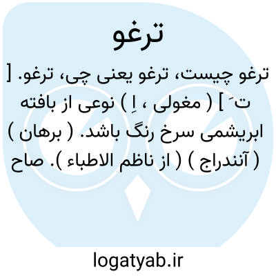 ترغو. [ ت َ ] ( مغولی، اِ ) نوعی از بافته ابریشمی سرخ رنگ باشد. ( برهان ) ( آنندراج ) ( از ناظم الاطباء ). صاحب سنگلاخ در ذیل تورغو آرد: حریرنفیس و بافته ابریشمی را گویند... و مجازاً قماش را نامند که بر سر احکام و ارقام چسبانند... مؤلف برهان قاطع ترغو به فتح تا خوانده و فارسی تصور کرده وبمعنی حریر نازک نوشته. ( سنگلاخ ص 179 ): ازقماشات قلب مثل کمخا و صوف و کتان و ترغو و قیفک، امید ثبات و توقع دوام مدارید. ( البسه نظام قاری ).