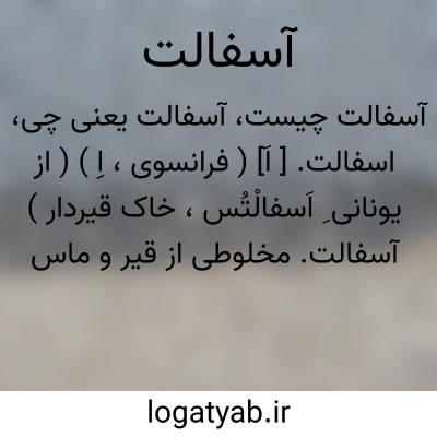 اسفالت. [ اَ] ( فرانسوی، اِ ) ( از یونانی ِ اَسفالْتُس، خاک قیردار ) آسفالت. مخلوطی از قیر و ماسه درشت یا شن ریز که پس از پختن جهت پوشش جاده و خیابانها بکار رود.