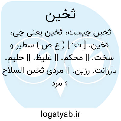 (ثَ ) [ ع. ] (ص. ) ۱ - ستبر، سخت. ۲ - محکم، استوار. ۳ - غلیظ. ۴ - حلیم، بردبار.