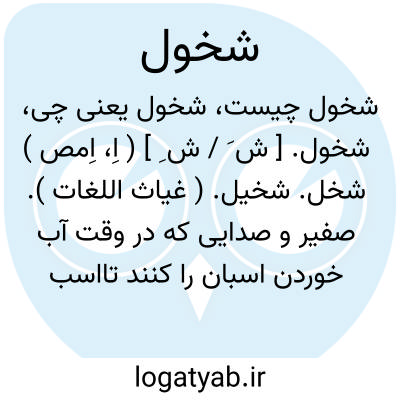 شخول. [ ش َ / ش ِ ] ( اِ، اِمص ) شخل. شخیل. ( غیاث اللغات ). صفیر و صدایی که در وقت آب خوردن اسبان را کنند تااسب را میل با آب خوردن بیشتر شود. ( از برهان ). صفیر. ( غیاث اللغات ). صفیری که هنگام آب خوردن اسب زنندو آن را بدین آواز ترغیب بر آب خوردن کنند. ( ناظم الاطباء ). شافوت. || ناله. فریاد. بانگ و نعره. ( برهان ). نعره. غرش و زاری. فریاد و فغان. ( ناظم الاطباء ). بانگ. فریاد. نعره. ( غیاث اللغات ). || استغاثه. فریادی که هنگام استعانت و یاری کنند. ( ناظم الاطباء ). || ضعف و سستی. ناتوانی. پژمردگی و سستی بدن. ( ناظم الاطباء ). پژمردگی. ( برهان ). || به ناخن کندن و به منقار گزیدن جانور گوشت را. ( غیاث اللغات ). رجوع به شخولیدن شود.