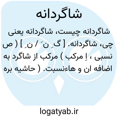 شاگردانه. [ گ ِ ن َ / ن ِ ] ( ص نسبی، اِ مرکب ) مرکب از شاگرد به اضافه ان و هاءنسبت. ( حاشیه برهان چ معین ). بمعنی زر اندکی که بعد از اجرت استاد بطریق انعام بشاگرد دهند. ( برهان قاطع ) ( بهار عجم ) ( آنندراج ) ( انجمن آرا ) ( ناظم الاطباء ). راشِن، زر اندکی که استاد بعد از اجرت بطریق انعام بشاگرد دهد و به فارسی شاگردانه گویند. ( منتهی الارب ) ( از اقرب الموارد ). مژدگانی بود. ( صحاح الفرس ). فغیاز. ( لغتنامه اسدی ). بغیاز. ( لغتنامه اسدی ): شاگرد بیاع از پس بازرگان برفت و گفت ای خواجه شاگردانه بده. ( قابوسنامه ص 180 ). || باج. رشوه. حق و حساب: پیش از آنک عامل وصل خراج اصل بدیوان گذاردی شاگرد حق حسابی و رسم عتابی درخواست، زن گفت ترا هم بر این باب ترانه ای و هم از این باب شاگردانه آرم. ( سندبادنامه ص 105 ). || بمجاز عطا که بفقرا دهند. ( از برهان قاطع ) ( بهار عجم ) ( آنندراج ). خیرات و عطائی که درباره فقرا کنند. ( ناظم الاطباء ). اطعام و خیرات بمساکین. || مهربانی بر کودکان نشره و آنچه بکودکان در آن وقت دهند. ( ناظم الاطباء ). || شاگرد و تلمیذ. ( ناظم الاطباء ). رجوع به شاگرد شود. || خادم و خدمتکار. ( ناظم الاطباء ). رجوع به شاگرد شود.