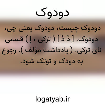 دودوک. [ دُ دُ ] ( ترکی، اِ ) قسمی نای ترکی. ( یادداشت مؤلف ). رجوع به دودک و توتک شود.