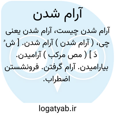 ( آرام شدن ) آرام شدن. [ ش ُ دَ ] ( مص مرکب ) آرامیدن. بیارامیدن. آرام گرفتن. فرونشستن اضطراب. فرونشستن خشم. تسلی یافتن. بازایستادن باد و طوفان و انقلاب. مقابل بشوریدن ( هوا، دریا ). بازایستادن از گریه. بشدن دَرد از عضوی چون دندان و جز آن. ساکن شدن وَجع.