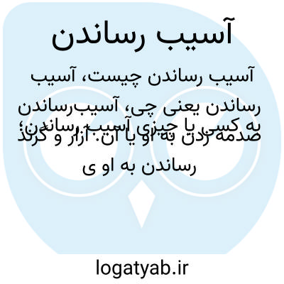 به کسی یا چیزی آسیب رساندن؛ صدمه زدن به او یا آن. آزار و گزند رساندن به او یا آن. به طرف او میرود، مبادا آسیبی به او برساند. «جمالزاده»