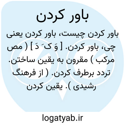 باور کردن. [ وَ ک َ دَ ] ( مص مرکب ) مقرون به یقین ساختن. تردد برطرف کردن. ( از فرهنگ رشیدی ). یقین کردن. معتقد شدن که چنین است. ( یادداشت مؤلف ). به راست داشتن شنوده ای. راست داشت گفتاری. استوار داشتن. عقیده پیدا کردن. اعتقاد پیدا کردن. معتقد شدن: