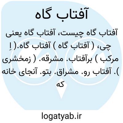 ( آفتاب گاه ) آفتاب گاه.( اِ مرکب ) برآفتاب. مشرقه. ( زمخشری ). آفتاب رو. مشراق. بتو. آنجای خانه که بیشتر روز آفتاب بدان تابد.