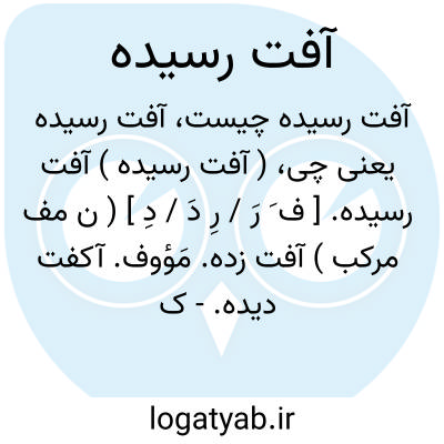 ( آفت رسیده ) ( اسم ) مبتلا بافت آسیب دیده و آفت زده: کشتی آفت رسیده زراعت آفت رسیده.