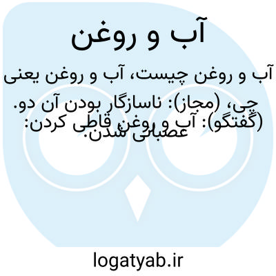 (مجاز): ناسازگار بودن آن دو. (گفتگو): آب و روغن قاطی کردن: عصبانی شدن.