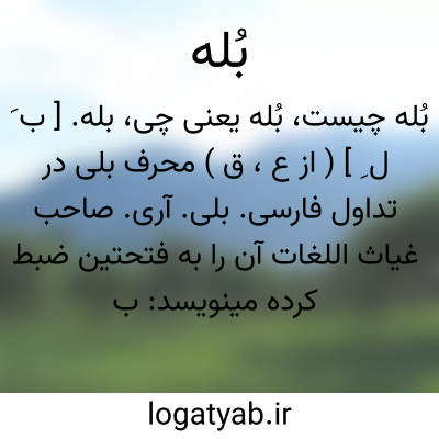 بله. [ ب َ هََ ] ( ع اسم فعل ) اسم فعل است به معنی دَع یعنی بمان، و مابعد آن منصوب آید بر مفعولیت چنانکه گوئی: بله عمرا. ( منتهی الارب ) ( از اقرب الموارد ). دست بدار. بگذار. ( دهار ). ترک کن. فروگذار. || مصدر است به معنی ترک کردن. و اسم مابعد آن مجرور است بر اضافت. ( منتهی الارب ) ( از اقرب الموارد ). || به معنی چگونه آید، و مابعدآن مرفوع باشد به ابتدائیت. ( منتهی الارب ). و روا بود که به معنی کیف نهند در تعجب. ( دهار ). || در حدیث بخاری به معنی غیر آمده است، در تفسیر سوره سجده از بخاری، و لاخطر علی قلب بشر ذخرا من بله ما اطلقتم علیه، مجرور به «من » مستعمل گشته و به لفظ غیر تفسیر کرده اند. ( منتهی الارب ). جزء. || آری. || ما بلهُک؛ چیست ترا. ( منتهی الارب ). ترا چه میشود. ( از ذیل اقرب الموارد از قاموس ).