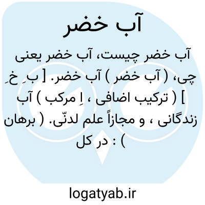( آب خضر ) آب خضر. [ ب ِ خ ِ ] ( ترکیب اضافی، اِ مرکب ) آب زندگانی، و مجازاً علم لدنّی. ( برهان ):
