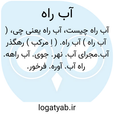 ( آب راه ) آب راه. ( اِ مرکب ) رهگذر آب.مجرای آب. نهر. جوی. آب راهه. راه آب. آوره. فرخور.