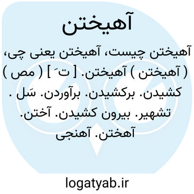 ( آهیختن ) (تَ ) [ په. ] (مص م. ) ۱ - آهختن، آختن، برکشیدن، بیرون کشیدن چیزی مانند شمشیر، تیغ. ۲ - بلند کردن، برافراشتن. ۳ - صف کشیدن. ۴ - راست کردن، قائم کردن، محکم کردن، استوار کردن.