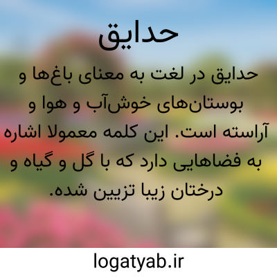 حدایق در لغت به معنای باغ‌ها و بوستان‌های خوش‌آب و هوا و آراسته است. این کلمه معمولاً اشاره به فضاهایی دارد که با گل و گیاه و درختان زیبا تزیین شده و محلی برای آرامش و تفریح به شمار می‌رود.