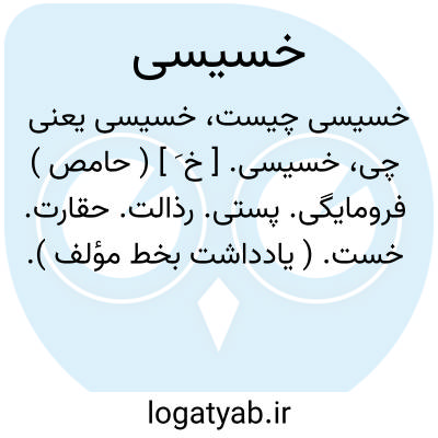خسیسی. [ خ َ ] ( حامص ) فرومایگی. پستی. رذالت. حقارت. خست. ( یادداشت بخط مؤلف ).