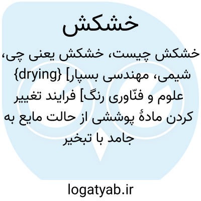 {drying} [شیمی، مهندسی بسپار علوم و فنّاورى رنگ] فرایند تغییر کردن مادۀ پوششی از حالت مایع به جامد با تبخیر حلاّل ها یا ایجاد واکنش های فیزیکی شیمیایی یا هر دو متـ. خشک شدن