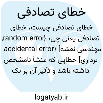 {random error, accidental error} [مهندسی نقشه برداری] خطایی که منشأ نامشخص داشته باشد و تأثیر آن بر تک تک اندازه گیری ها تابع قانون خاصی نباشد