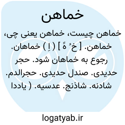 خماهن. [ خ ُ هََ ] ( اِ ) خماهان. رجوع به خماهان شود. حجر حدیدی. صندل حدیدی. حجرالدم. شادنه. شاذنج. عدسیه. ( یادداشت بخطمؤلف ). رجوع به تحفه حکیم مؤمن شود: