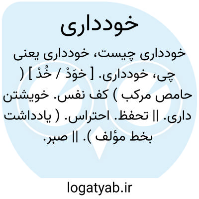 خودداری. [ خوَدْ / خُدْ ] ( حامص مرکب ) کف نفس. خویشتن داری. || تحفظ. احتراس. ( یادداشت بخط مؤلف ). || صبر. شکیبائی. بردباری. تحمل. ( ناظم الاطباء ). || پرهیز. احتماء. ( یادداشت بخط مؤلف ).