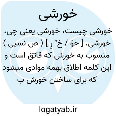 منسوب به خورش که قاتق است و این کلمه اطلاق بهمه موادی میشود که برای ساختن خورش بکار میرود چون کدوی خورشی و سیب خورشی که قسمی سیب است برای ساختن خورش سیب یا آلوچه خورشی که آلوچه ایست برای ساختن و تهیه کردن خورش آلوچه.