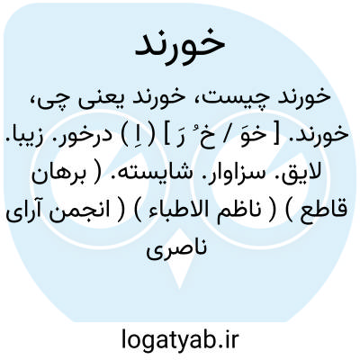 خورند. [ خوَ / خ ُ رَ ] ( اِ ) درخور. زیبا. لایق. سزاوار. شایسته. ( برهان قاطع ) ( ناظم الاطباء ) ( انجمن آرای ناصری ) ( آنندراج ). متناسب. ( یادداشت مؤلف ):