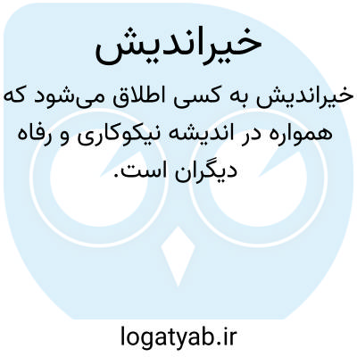 خیراندیش به کسی اطلاق می‌شود که همواره در اندیشه نیکوکاری و رفاه دیگران است. این ویژگی، نشان‌دهنده ذهنیتی است که نیات و افکارش پیوسته در جهت اعمال خیر و ایجاد اثری مثبت در زندگی همنوعانش هدایت می‌شود. این گرایش ذاتی به ایثار، صرفاً یک احساس زودگذر نیست، بلکه بخش بنیادینی از شخصیت دلسوز فرد را تشکیل می‌دهد و او را به سمت جستجوی فعالانه فرصت‌هایی برای مهربانی و حمایت سوق می‌دهد.