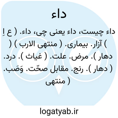 بود خواهد همچنان بر جان ما این دائماً.سلمان.صاحب کشاف اصطلاحات الفنون آرد: داء در لغت به معنی درد و بیماری. ادواء جمع. و داء عُضال، درد سخت. و داء دفین، دردی که معلوم نباشد و اعراب که گویند: به داء ظبی، معنای آن آن است که او را دردی نیست چنانکه آهو را دردی نباشد. و نیز در پزشکی داء اطلاق میشود بر هر عیب باطنی که چیزی از آن آشکاربشود یا نشود، و این مثل که اَدْوَء من البخل گفته اند؛ یعنی سخت تر از بخل چنانکه در بحر الجواهر گفته -انتهی. || داء دَفین؛ درد سخت که درمان آن ندانند. ( مهذب الاسماء ). بیماری که معلوم نشود مگر آن وقت که فساد وی منتشر گردد. ( منتهی الارب ). || داء دَوی؛ دردی سخت. ( مهذب الاسماء ). || عیب.