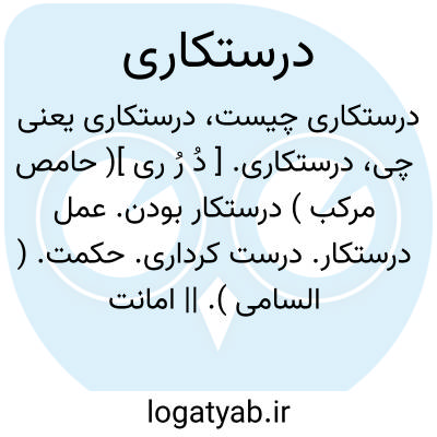 درستکاری. [ دُ رُ ری ]( حامص مرکب ) درستکار بودن. عمل درستکار. درست کرداری. حکمت. ( السامی ). || امانت:
