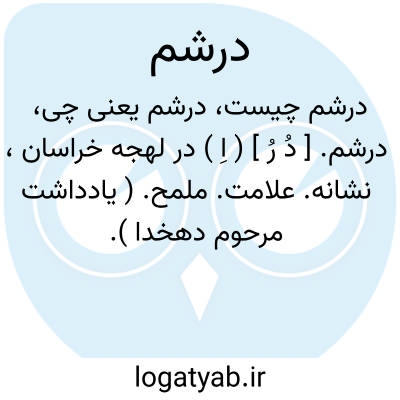 درشم. [ دُ رُ ] ( اِ ) در لهجه خراسان، نشانه. علامت. ملمح. ( یادداشت مرحوم دهخدا ).