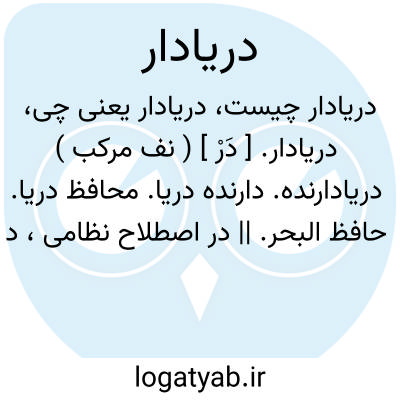 دریادار. [ دَرْ ] ( نف مرکب ) دریادارنده. دارنده دریا. محافظ دریا. حافظ البحر. || در اصطلاح نظامی، درجه ای از درجات افسران نیروی دریایی. صاحب منصب نیروی دریائی امیرالبحر سوم. ( از لغات فرهنگستان ).