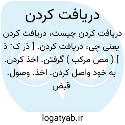 دریافت کردن. [ دَرْ ک َ دَ ] ( مص مرکب ) گرفتن. اخذ کردن. به خود واصل کردن. اخذ. وصول. قبض چنانکه وجهی را. مقابل پرداخت کردن. رسید. واصل شدن. استاندن. ( یادداشت مرحوم دهخدا ). || تمیز دادن. فهمیدن. معلوم کردن. ( ناظم الاطباء ). || نگریستن. ( ناظم الاطباء ).