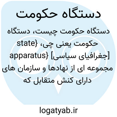 {state apparatus} [جغرافیای سیاسی] مجموعه ای از نهادها و سازمان های دارای کنش متقابل که دولت ازطریق آنها قدرت خود را اعمال می کند