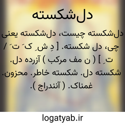 فرهنگ دل شکسته و جود نزار.فرخی.استادم بونصر رحمةاﷲ علیه به هرات چون دلشکسته ای می بود... امیر[ مسعود ] به چند نوبت او را دلگرم کرد. ( تاریخ بیهقی چ ادیب ص 139 ). افشین برخاست دل شکسته و بدست و پای مرده برفت. ( تاریخ بیهقی ص 174 ). سخت دل شکسته بود و همگان وی را دل خوش می کردند. ( تاریخ بیهقی ص 554 ).