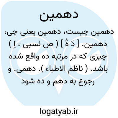 دهمین. [ دَ هَُ ] ( ص نسبی، اِ ) چیزی که در مرتبه ده واقع شده باشد. ( ناظم الاطباء ). دهمی. و رجوع به دهم و ده شود.