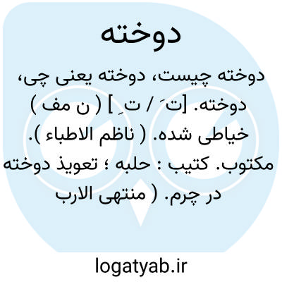 دوخته. [ ت َ/ ت ِ ] ( ن مف ) دوشیده. ( آنندراج ) ( برهان ) ( ناظم الاطباء ). دوشیده شده. ( منتهی الارب ) ( یادداشت مؤلف ): النخیرة؛ شیر بز و میش بر هم دوخته. ( مهذب الاسماء ).