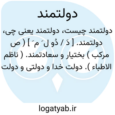 نشود دوست روی و دولتمند.سعدی.باز بلند پرواز ایزد متعال بر دست اقتدار هیچ دولتمندی کامکار بسان وجود فایض الجودش ننشسته. ( حبیب السیر چ تهران ج 3 ص 322 ). || توانگر و مالدار و غنی و مرد مالدار. ( ناظم الاطباء ). در تداول عوام فارسی زبانان متمول. دارا. ثروتمند. صاحب ثروت بسیار. ( یادداشت مؤلف ). || سبب و باعث. || اثر. ( ناظم الاطباء ). امااین دو معنی اخیر جای دیگر دیده نشد.