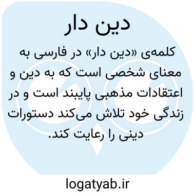 کلمهی «دین دار» در فارسی به معنای شخصی است که به دین و اعتقادات مذهبی پایبند است و در زندگی خود تلاش میکند دستورات دینی را رعایت کند. این واژه از ترکیب «دین» به معنای مذهب یا باور مذهبی و «دار» به معنای دارا یا برخوردار ساخته شده است و نشاندهنده کسی است که دارای ویژگیهای دینی است. دینداری شامل انجام فرایض مذهبی، رعایت اخلاق و ارزشهای دینی و پیروی از آموزههای دینی در رفتار و گفتار است. شخص دین دار معمولاً در جامعه مورد احترام قرار میگیرد و رفتار او به عنوان الگویی از تقوا و پایبندی به موازین دینی شناخته میشود. در ادبیات فارسی، دین دار بودن گاهی به معنای راستگویی، صداقت و پایبندی به اصول انسانی نیز به کار میرود. این واژه بار مثبت دارد و اغلب برای تمجید یا توصیف افراد شایسته به کار میرود. در مکالمات روزمره، ممکن است برای اشاره به کسانی که مذهبی و متعهد هستند استفاده شود. مترادفهایی که نزدیک به معنای آن هستند شامل مؤمن، پرهیزگار، متدین و متقی است.