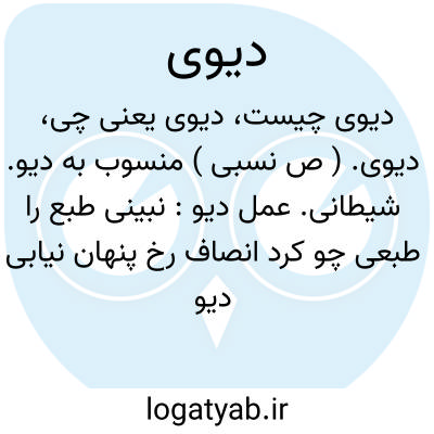 دیوی. ( ص نسبی ) منسوب به دیو. شیطانی. عمل دیو: