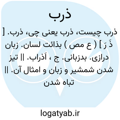ذرب. [ ذَ رِ ] ( ع ص ) تیز از هر چیزی: سیف ذَرِب؛ شمشیری تیز، سیف ٌ حدید. لسان ذَرِب؛ زبان تند و تیز و بد. || مرد بذی اللسان؛ مرد بدزبان. مرد زبان دراز. || تیز زبان. || ( اِ ) نشگرده. ازمیل. شفرة. ج، ذُرب.