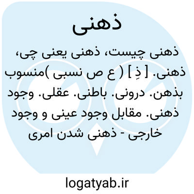 ( صفت ) منسوب به ذهن درونی باطنی عقلی. یا وجود ذهنی وجود شئ در ذهن شخص مقابل وجود عینی وجود خارجی.