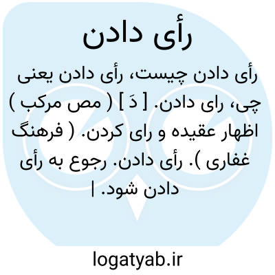 رأی دادن. [ رَءْی ْ دَ ] ( مص مرکب ) نظر دادن بانتخاب کسی برای وکالت مجلس و یا سناتوری یا عضویت انجمنی. ابراز نظر درباره انتخاب شدن کسی بوکالت و یا سناتوری. در اصطلاح سیاسی و عرف انتخابات، نوشتن نظر خود درباره انتخاب شدن کسی روی کاغذ و در صندوق خاص انتخابات انداختن. || نظر موافق دادن مجلس به دولت یا وزیری. || حکم کردن. قضا کردن. فتوی دادن. ( ناظم الاطباء ).