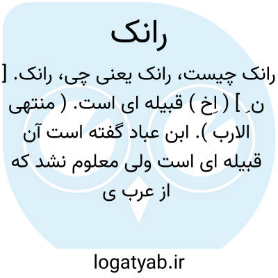 رانک.( اِخ ) نام کوهی است در ترکستان که دارای معادن طلا ونقره است. ( از نزهة القلوب ج 3 ص 195 و 201 و 202 ).