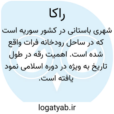 راکا. ( اِخ ) شهری است در سوریه در کنار فرات که در حدود 8000 تن جمعیت دارد. و در جنب شهرهای قدیمی نیکوفوریون و کالینیکون و کونستانتینوپولیس واقع شده است. و در آغاز قرن نهم م. پایتخت هارون الرشید خلیفه بوده است.