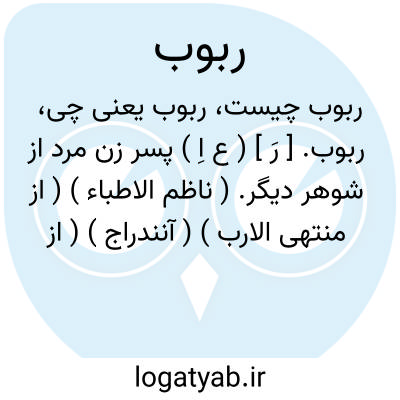 ربوب. [ رَ ] ( ع اِ ) پسر زن مرد از شوهر دیگر. ( ناظم الاطباء ) ( از منتهی الارب ) ( آنندراج ) ( از اقرب الموارد ). || شوهر مادر. ( از اقرب الموارد ).