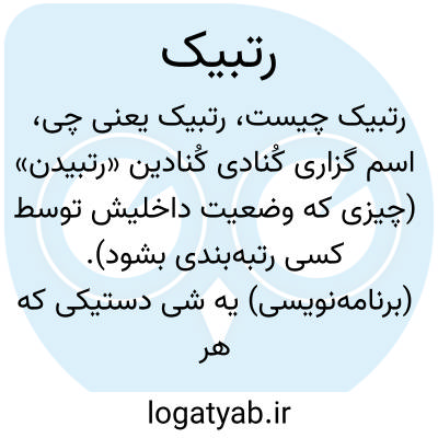 (برنامهنویسی) یه شی دستیکی که هر جایگاهاش دارای یه معنی مشخص است (تاپل؛ چندتایی مرتب): 💬 در پایتون، برای نِمادن (نشان دادن) رتبیک، نوعیپتال (کلاس) tuple بهرشته بشود (استفاده میشود).