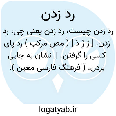 رد زدن. [ رَ زَ دَ ] ( مص مرکب ) رد پای کسی را گرفتن. || نشان به جایی بردن. ( فرهنگ فارسی معین ).