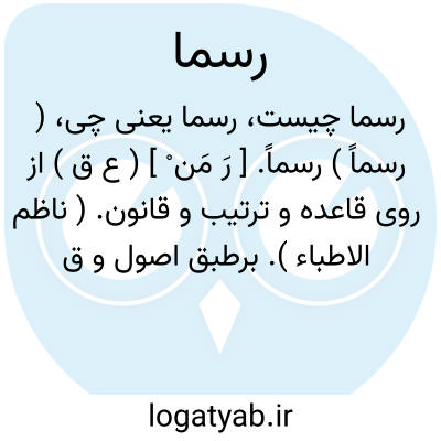 ( رسماً ) رسماً. [ رَ مَن ْ ] ( ع ق ) از روی قاعده و ترتیب و قانون. ( ناظم الاطباء ). برطبق اصول و قواعد و سنن:ناپلئون در 1804 م. رسماً تاجگذاری کرد. ( فرهنگ فارسی معین ). || بطور دولتی. ( فرهنگ نظام ).