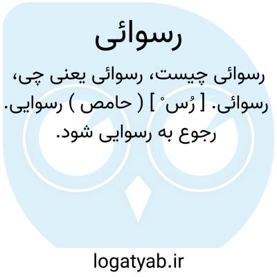 رسوائی. [ رُس ْ ] ( حامص ) رسوایی. رجوع به رسوایی شود.