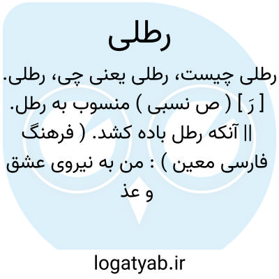 رطلی. [ رَ ] ( ص نسبی ) منسوب به رطل. || آنکه رطل باده کشد. ( فرهنگ فارسی معین ):