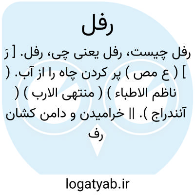 رفل. [ رَ ف َ ] ( ع اِ ) رفل الرکیة؛ جای ژرف از چاه. || رفل رفل؛ کلمه ای که بدان میش را جهت دوشیدن خوانند. ( ناظم الاطباء ) ( منتهی الارب ) ( آنندراج ).